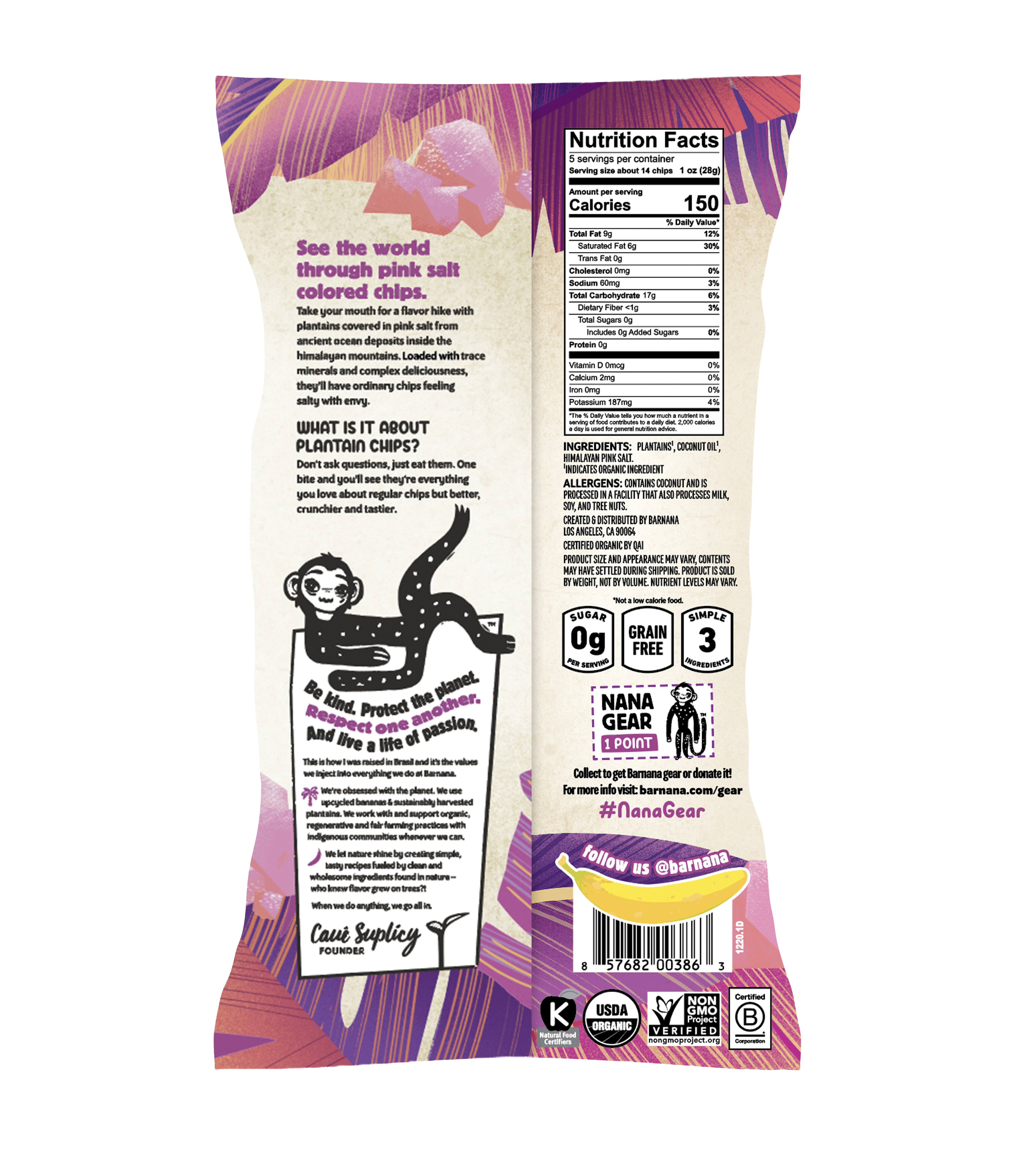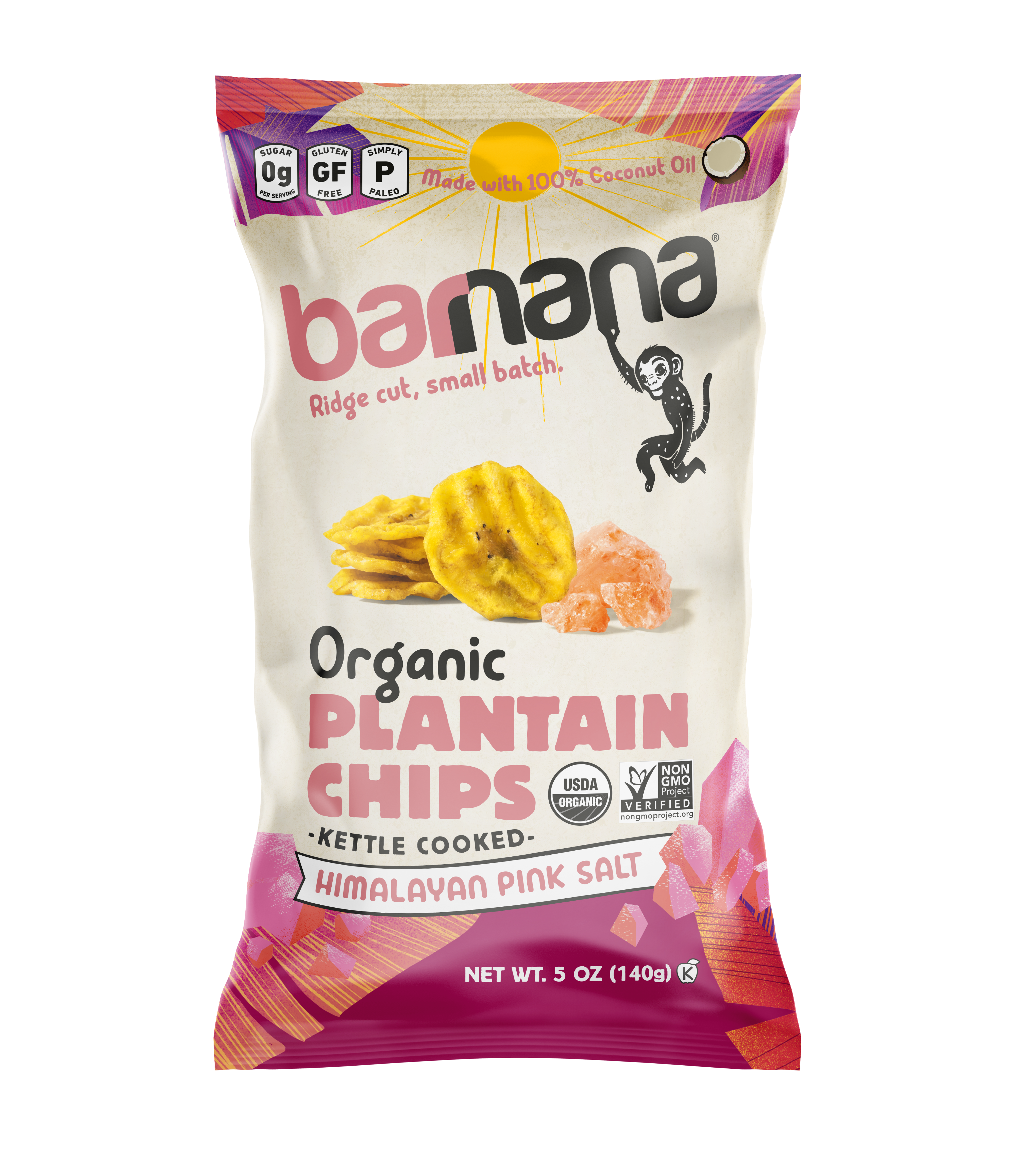 Take your mouth for a flavor hike with plantains covered in pink salt from ancient ocean deposits inside the Himalayan mountains. With 84 trace minerals and complex deliciousness, they'll have ordinary chips feeling salty with envy.