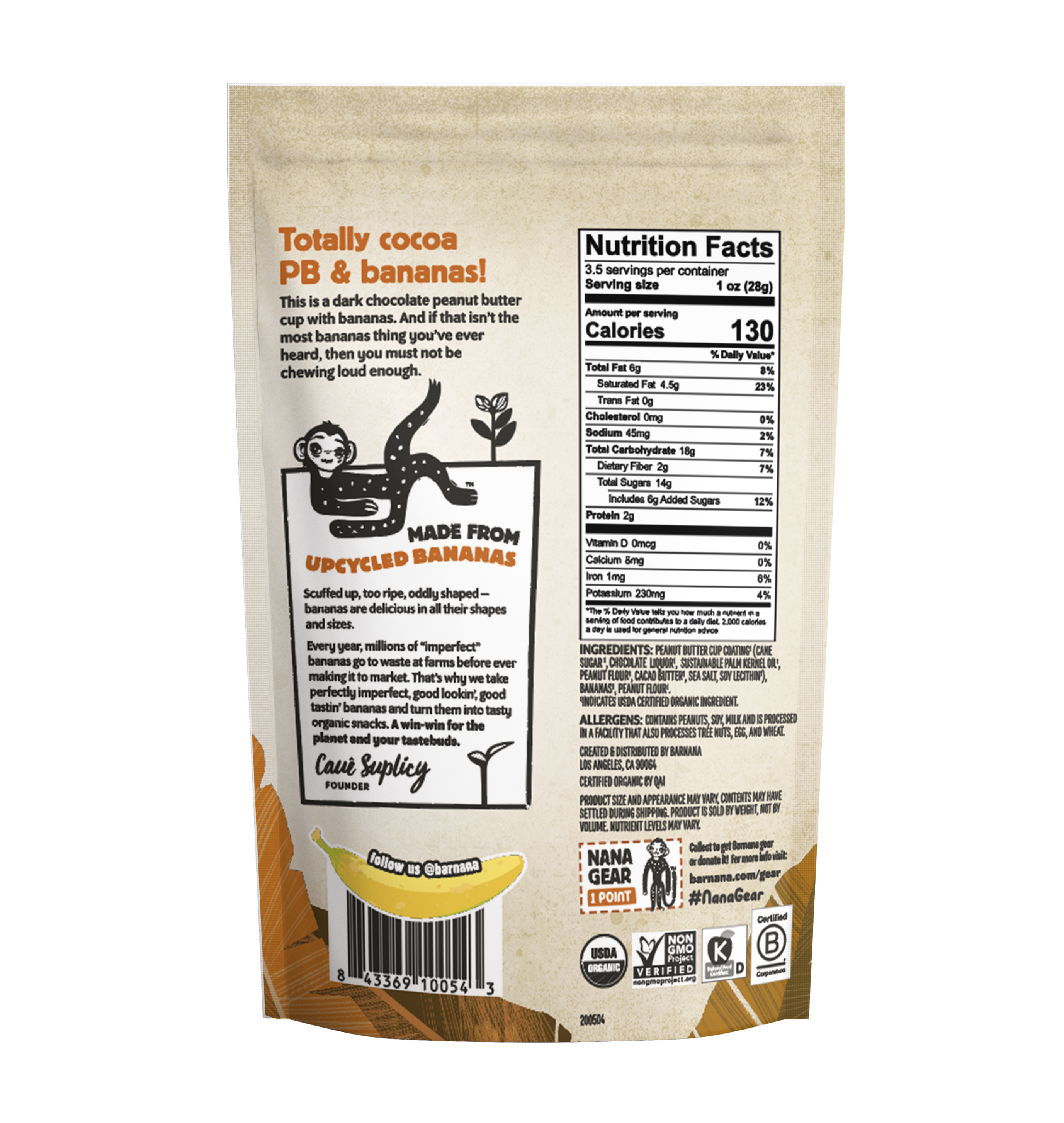 Combining Barnana’s two greatest hits, Chocolate and Peanut Butter, PB Cup Bites are chocolatey, creamy, dangerously snackable, and made with upcycled bananas.