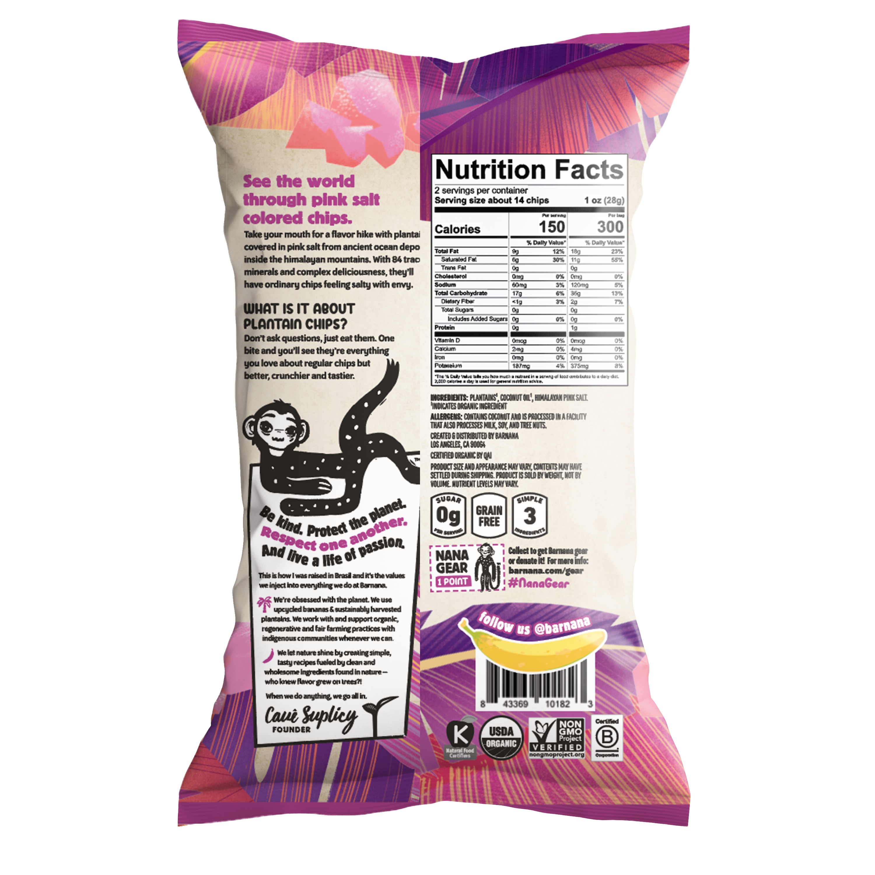 Take your mouth for a flavor hike with plantains covered in pink salt from ancient ocean deposits inside the Himalayan mountains. With 84 trace minerals and complex deliciousness, they'll have ordinary chips feeling salty with envy.